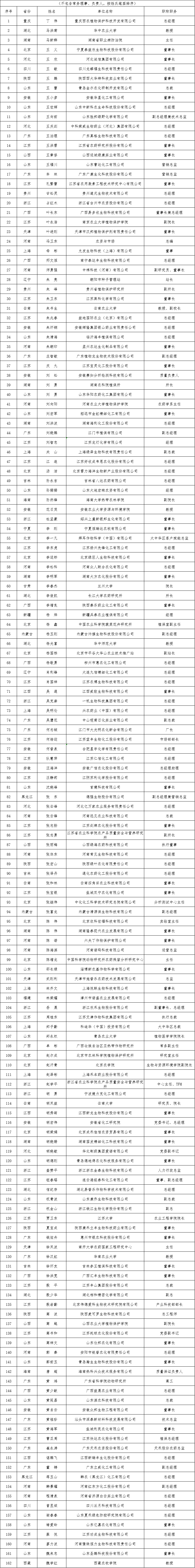 | 江苏 | 裴彬彬 | 江苏辉丰生物农业有限公司 | 经 理 |